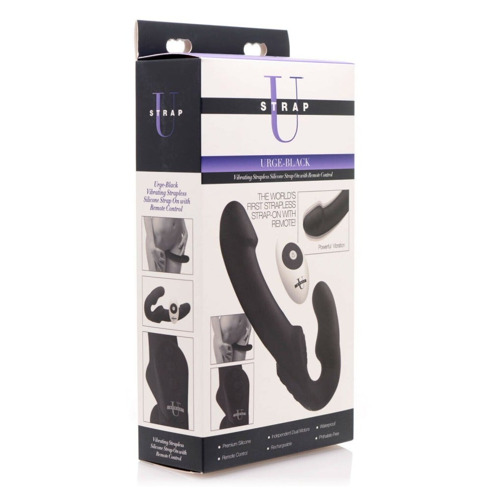 Страпонний вібратор Urge без бретелів - це страпонний вібратор, який можна носити без ременя безпеки. Короткий кінець іграшки для пар можна вставити у піхву. Вібратор-страпон утримується дома за рахунок напруги м'язів тазового дна. Потім користувач може проникнути у свого партнера анально чи вагінально. Завдяки вигнутому верху під час носіння вібратора стимулюється точка G. Стимулятором можна керувати за допомогою пульта дистанційного керування або за допомогою кнопок на самому вібраторі. Іграшка має окремий моторчик на обох кінцях, який має 3 швидкості та 5 режимів вібрації. Urge також водонепроникний, тому ви можете використовувати його у душі або у ванні. Вібратор перезаряджається та постачається з USB-кабелем для зарядного пристрою. Пульт дистанційного керування працює від батарейок (входять до комплекту). Завжди ретельно мийте іграшку після використання засобом для чищення іграшок та водою для дотримання належної гігієни.