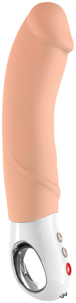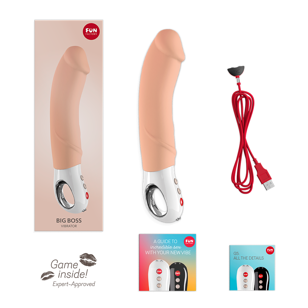 Вібратор нового покоління, який вразить вас своїм розміром і потужністю! Силіконовий ствол реалістичної форми з плавним вигином не тільки дарує відчуття наповненості, але і вражає різноманітністю режимів роботи. Потужність моторчика збільшена на 25%, але вібратор як і раніше працює дуже тихо і дозволяє навіть у воді тримати під контролем ваше насолоду. Оновлена ергономічна рукоятка має 3 об'ємні кнопки: "+ "і » - «для управління швидкостями і режимами і кнопка» fun" для включення/вимикання і блокування від випадкового натискання. Вібратор Big Boss G5 і має вбудований акумулятор, який заряджається від магнітного зарядного пристрою USB.