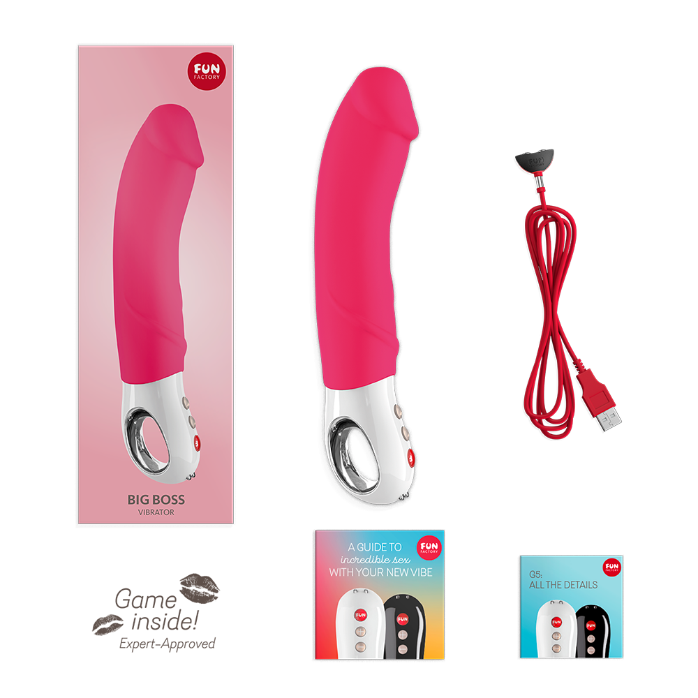 Вібратор нового покоління, який вразить вас своїм розміром і потужністю! Силіконовий ствол реалістичної форми з плавним вигином не тільки дарує відчуття наповненості, але і вражає різноманітністю режимів роботи. Потужність моторчика збільшена на 25%, але вібратор як і раніше працює дуже тихо і дозволяє навіть у воді тримати під контролем ваше насолоду. Оновлена ергономічна рукоятка має 3 об'ємні кнопки: "+ "і » - «для управління швидкостями і режимами і кнопка» fun" для включення/вимикання і блокування від випадкового натискання. Вібратор Big Boss G5 і має вбудований акумулятор, який заряджається від магнітного зарядного пристрою USB.