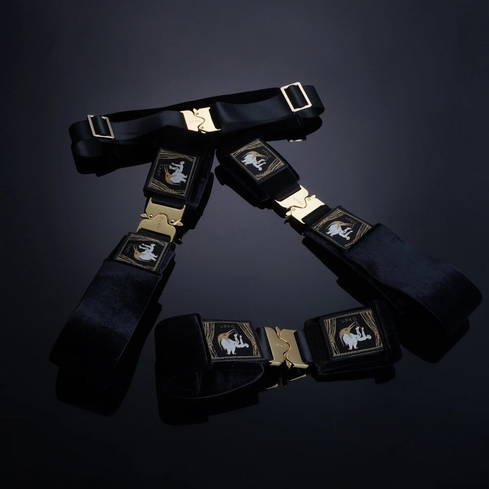 UPKO надає безліч стилів та комбінацій, що дозволяє вам насолоджуватися необмеженим задоволенням. У комплект входять наручники, поножі та манжети на стегнах, а також сполучний ремінь, який можна з'єднувати між собою, створюючи унікальні пози для кожного сеансу. Обмежувачі забезпечують захоплюючі та надійні відчуття.