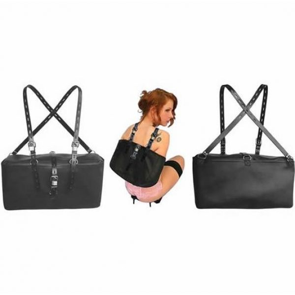 Чорний бондаж для рук виготовлений з високоякісного матеріалу у формі сумки. Сковує руки на спині. Сумка прикріплюється шкіряними регульованими ременями з металевими пряжками.