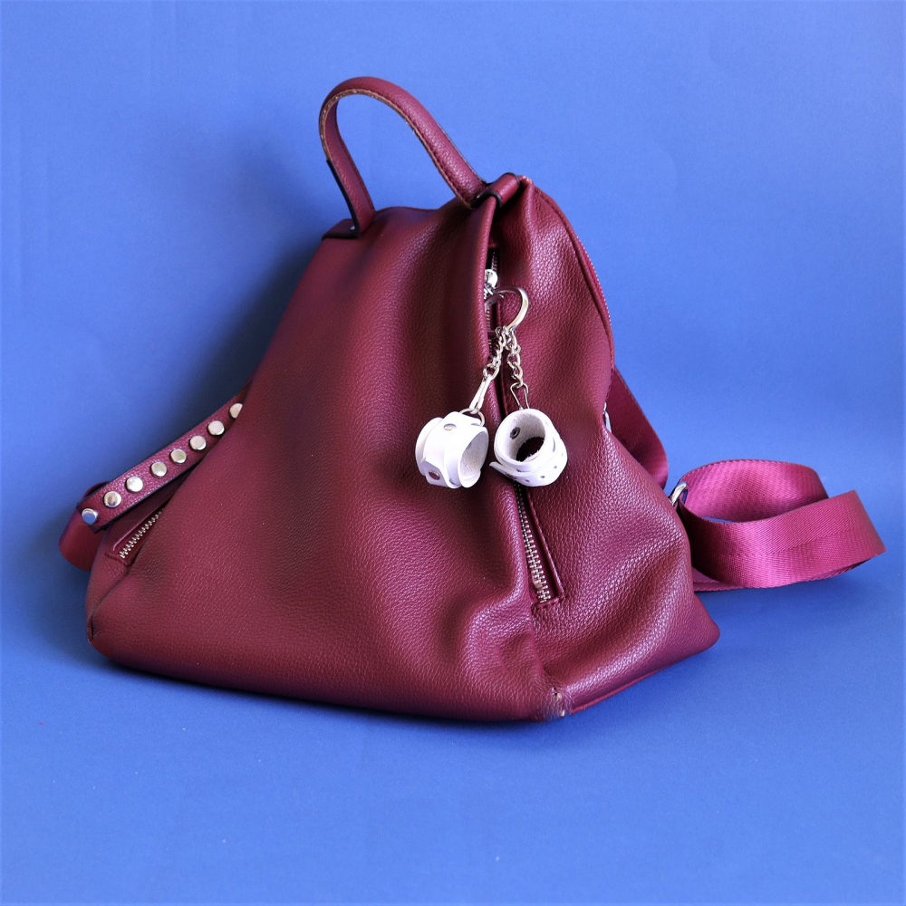 Пропонуємо купити брелок Наручники білий-зухвалий сувенір, який легко знайде місце на вашій сумці, рюкзаку або ключах! Виготовлений з натуральної шкіри, він повністю повторює справжні наручники.