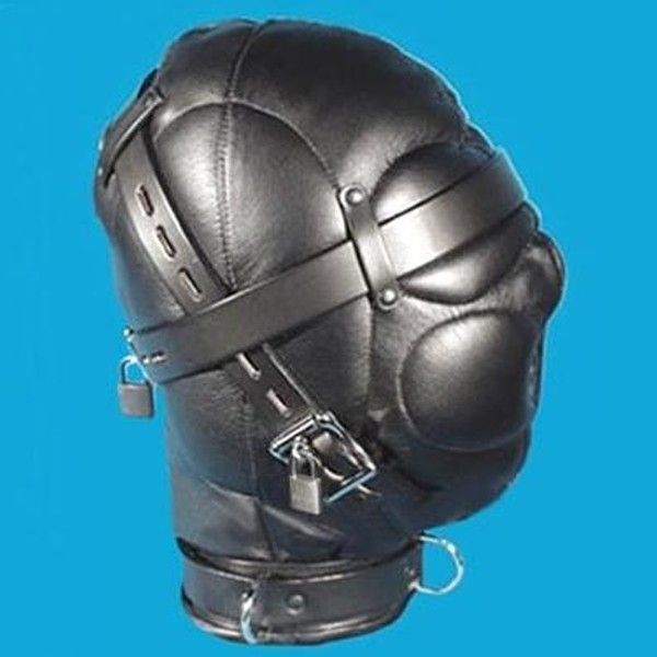Чорна шкіряна маска на обличчя для БДСМ-ігор