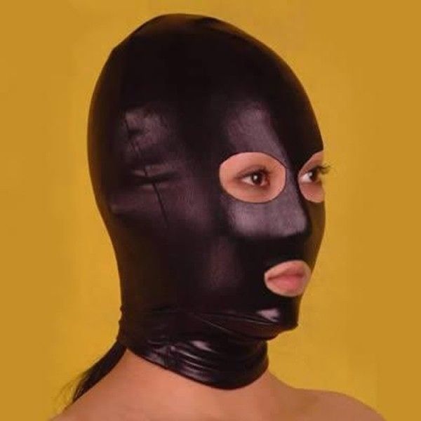 Чорна вінілова маска на обличчя з вирізами для БДСМ-ігор