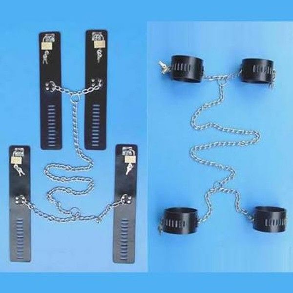 Чорний бондаж виготовлений з натуральної шкіри. Складається з наручників і наножников. Регульовані ремені забезпечують безпеку і комфорт. Міцні Ланцюги з нержавіючої сталі. У комплект входять 4 латунних замку і ключі.