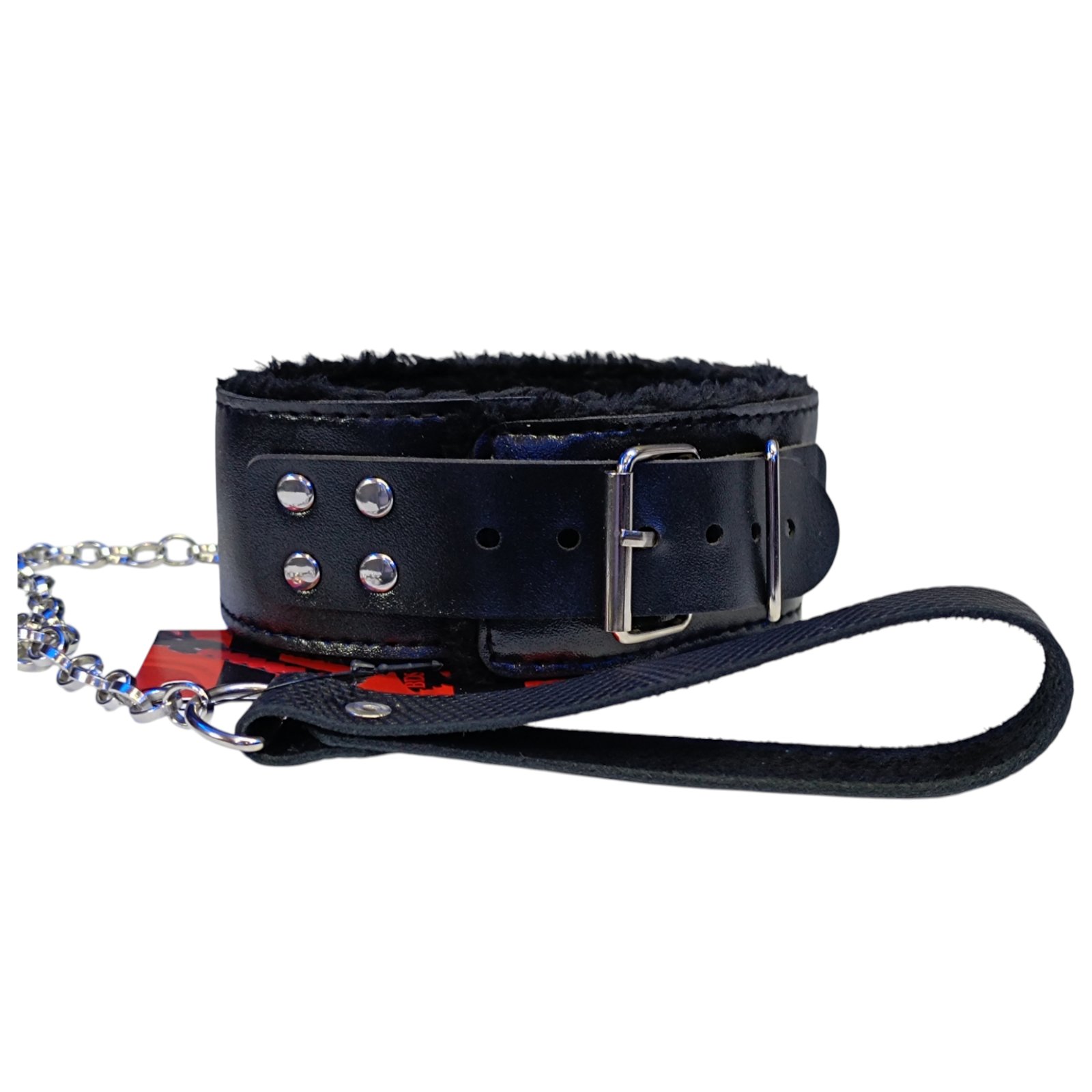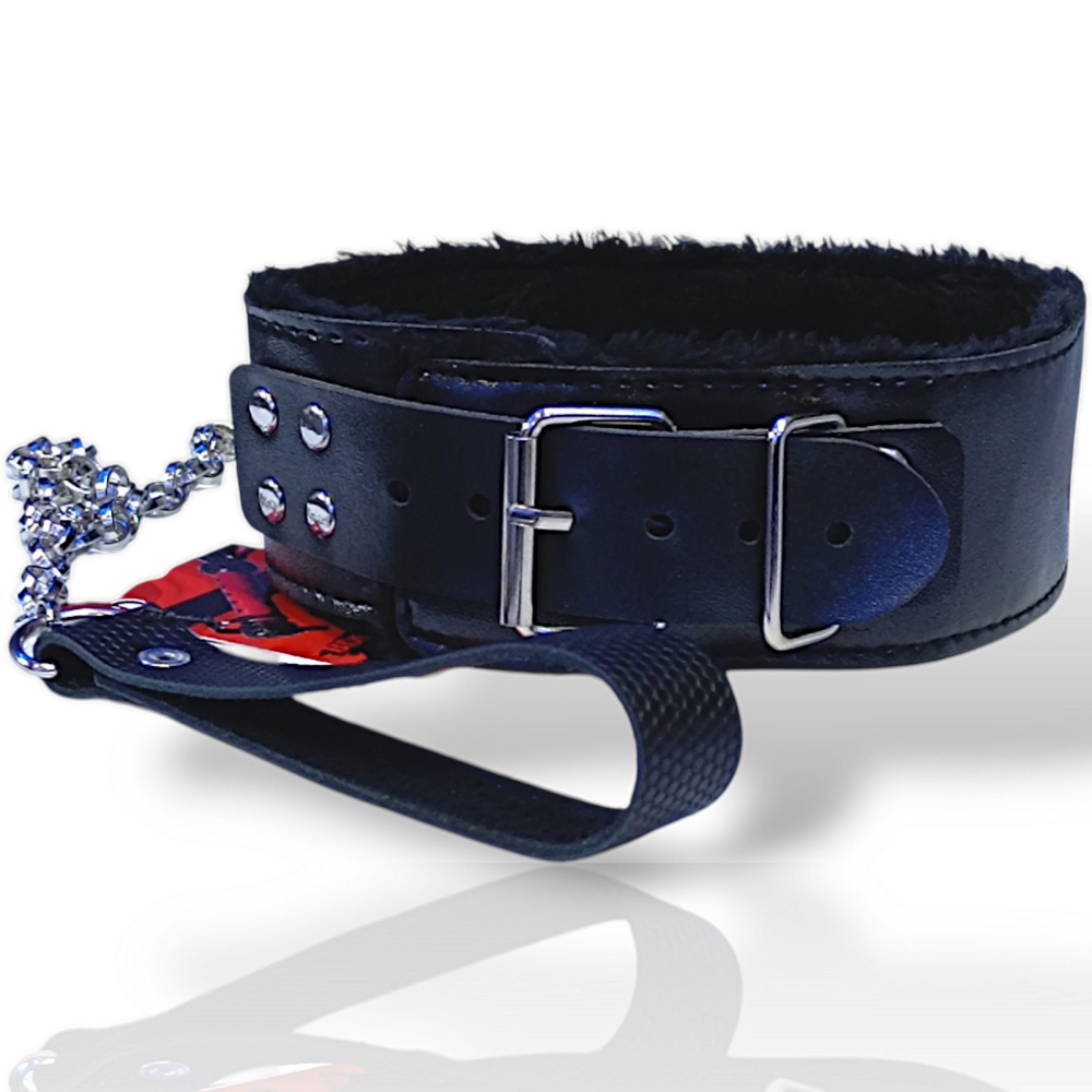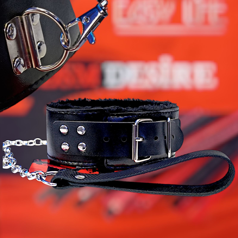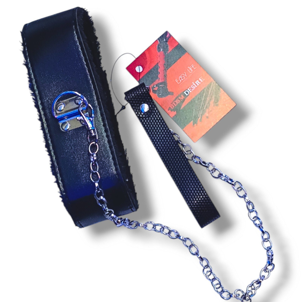 Чорний м'який нашийник з ланцюжком повідцем та зручним тримачем зі штучної шкіри Easy Life BDSM Desire Love leash