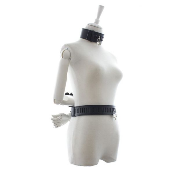 Характеристики Фіксація для рук за спиною до талії з кріпленням до шиї шкіряний чорний Bdsm4u