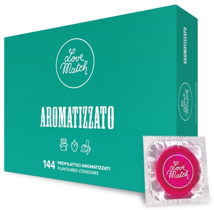 Ароматизовані презервативи Love Match Arromatizato допоможуть вам відкрити для себе новий смак кохання. Ароматизовані Love Matches стануть чудовими союзниками для орального сексу. Смаки шоколаду, банана і полуниці загострять ваші почуття, зробивши вашу любовну пригоду особливою і неповторною. Оптимальний розмір накопичувача та самого презервативу роблять його універсальним для всіх користувачів. Презервативи Love Match виготовлені з натурального латексу, прозорі, високої еластичності та міцності, гарантують максимальну безпеку при використанні. Італійська класика в ретро-стилі: презерватив чорного кольору з ароматом шоколаду.