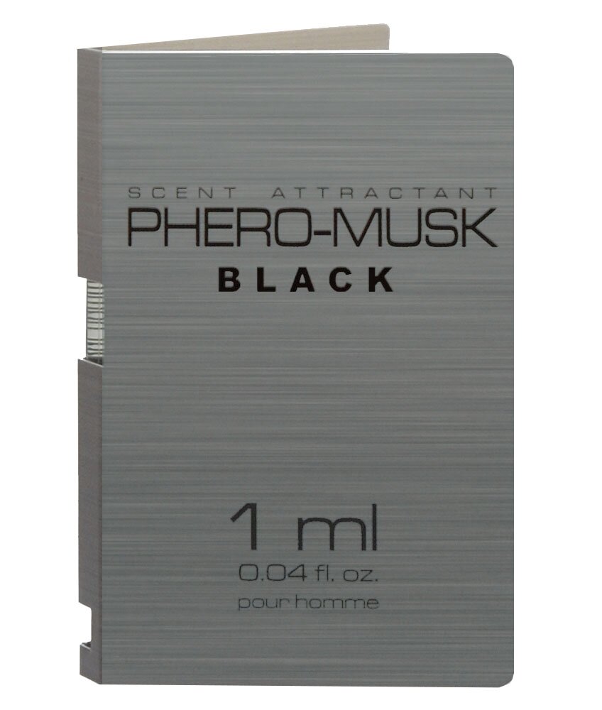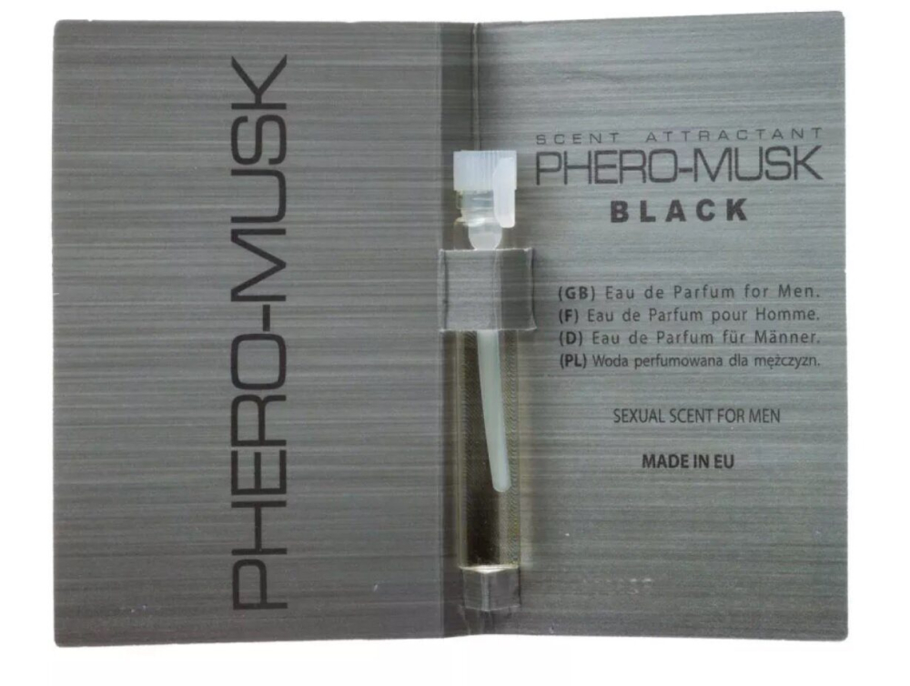 PHERO-MUSK BLACK препарат з сучасним, інтригуючим і дуже чоловічим ароматом. Унікальна композиція викликає інтерес у жінок і змушує їх сприймати чоловіка як виключно сильного, мужнього і зрілого. Жінки підсвідомо реагують на інгредієнти аромату і не можуть їм протистояти.