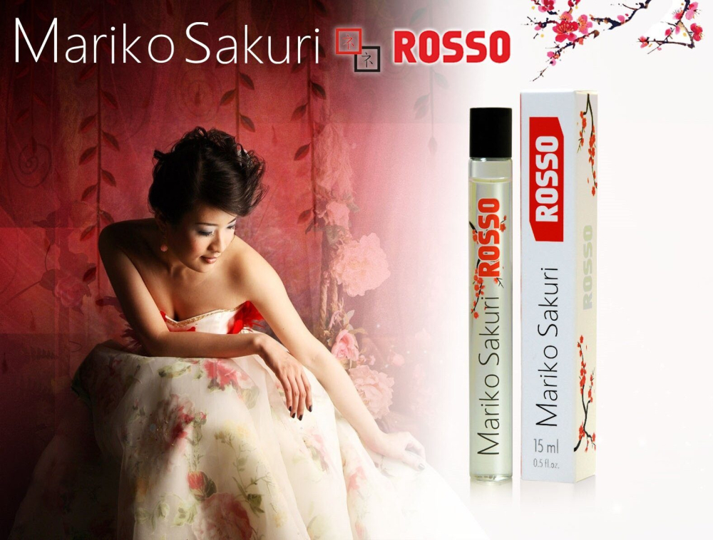 «Mariko Sakuri ROSSO» - ексклюзивний і сексуальний аромат, який являє собою складну композицію з шампанського, фруктових нот, троянди і квітів персика. Аромат асоціюється з вишуканою розкішшю, елегантністю і витонченим стилем.