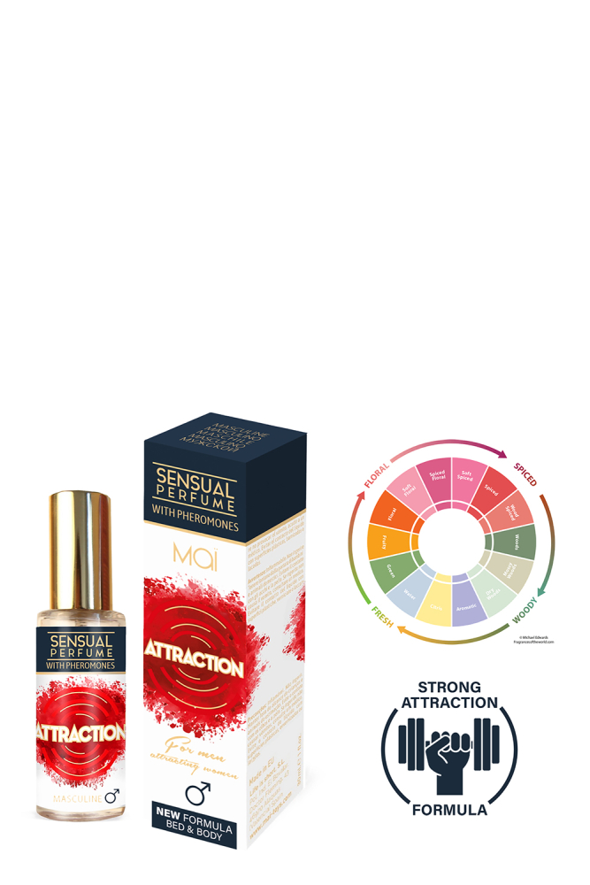 Після кількох років ретельних досліджень феромонів та ароматерапії Mai Attraction розробила нову ексклюзивну і абсолютно п'янку алхімічну формулу, яка разом із вмістом на основі феромонів підвищить вашу здатність викликати повний потяг у оточуючих вас людей.