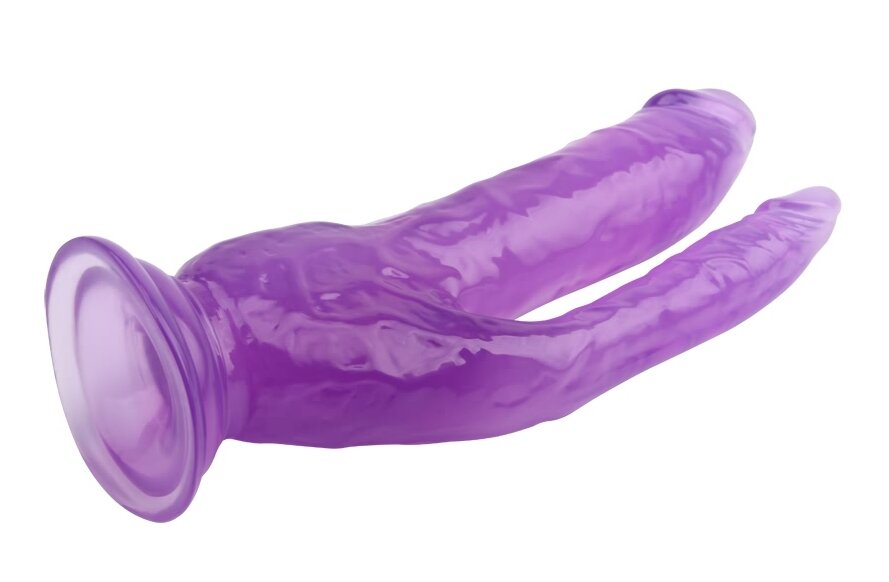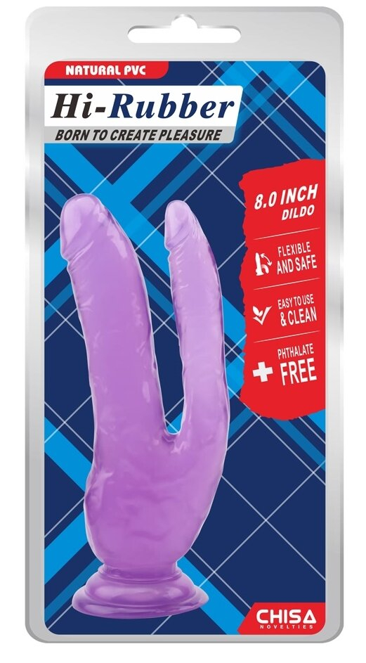 Подвійний анально вагінальний фалоімітатор на присоску фіолетовий CHISA Hi Rubber 8.0 Inch Dildo