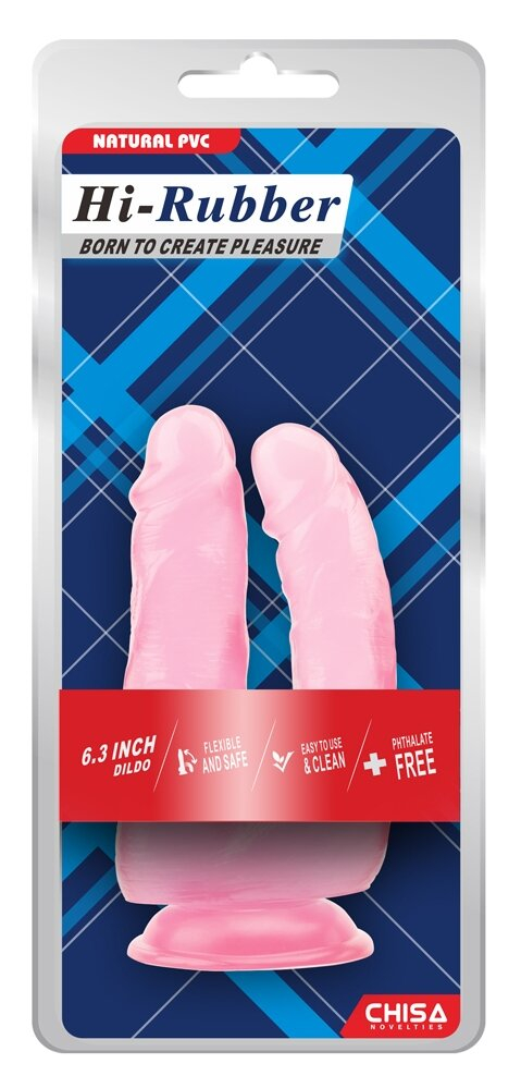 Подвійний анально вагінальний фалоімітатор на присоску рожевий CHISA Hi Rubber 6.3 Inch Dildo