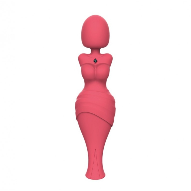 Подвійний вібратор Ванд із вакуумною стимуляцією у формі мікрофона із силуетом жінки червоного кольору Cnt Venus De Milo