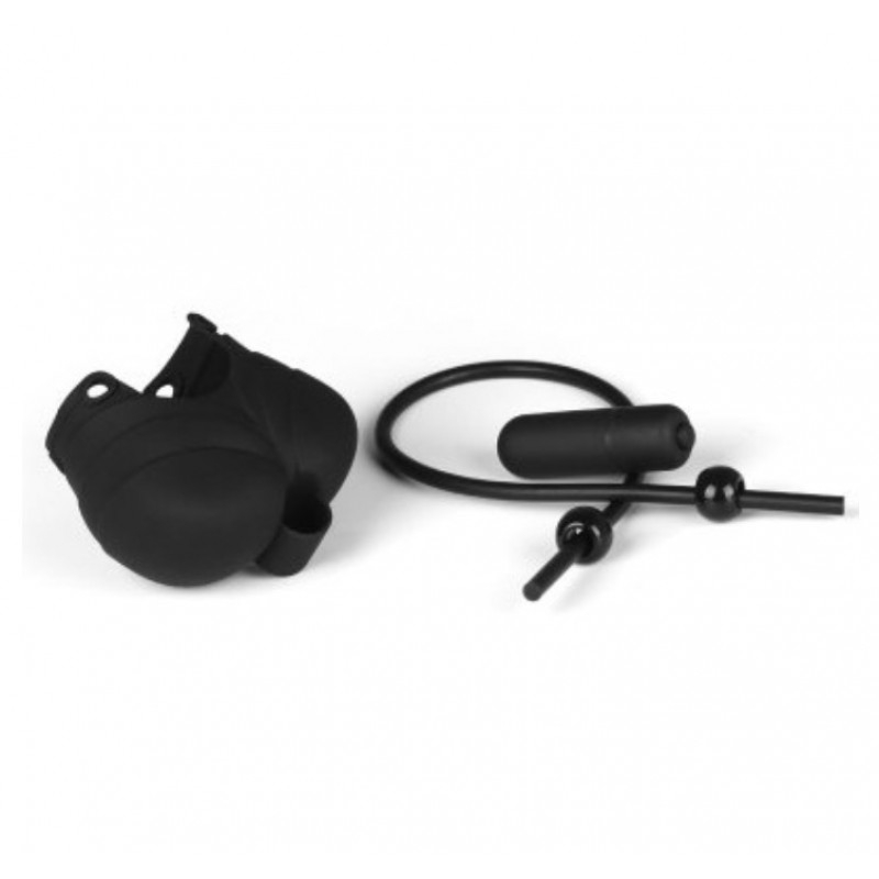 Ерекційне ласо з мішечком для мошонки з вібрацією чорного кольору Bdsm4u