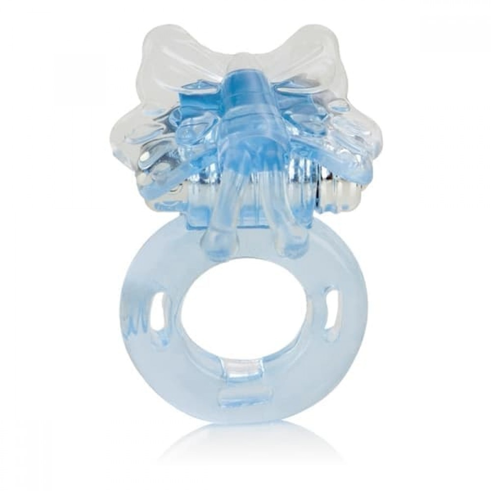 Ерекційне кільце з вібрацією California Exotic, блакитне, 2 см Кільце, що вібрує, для пеніса — це чудове доповнення до вашого статевого акту! Воно порадує як чоловіка, так і жінку, подарувавши обом задоволення і приємні враження. Кільце виготовлене з термопластичної гуми, воно приємне на дотик і якісне. Відмінно тягнеться, тож забезпечить зручність. Іграшка прикрашена чарівним метеликом, який буде приємно лоскотати жінку під час проникнення. І це ще не все! За ніжними крилами метелика ховається маленька віброкуля, яка подарує додаткову стимуляцію. Тільки уявіть, яким яскравим буде секс! Кільце злегка стискає основу пеніса, відтягуючи момент еякуляції. Для більшого ефекту скористайтесь пролонгатором. Для очищення обробіть спеціальним засобом для секс-іграшок. Працює від трьох батарейок LR41.
