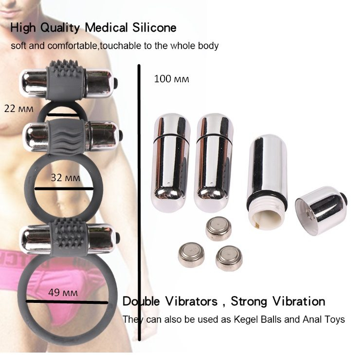 Ерекційне кільце "Triple bullet Cock ring" призначене для посилення ерекції, пролонгації статевого акту і більш повного задоволення партнера за допомогою вібрації. Кільце виконано з еластичної термопластичної гуми, абсолютно безпечною для здоров'я. Складається з трьох ерекційних кілець, які зчеплені між собою.На кожному кільці розташовані 3 потужних вібропулі, які забезпечать неймовірно потужну стимуляцію.