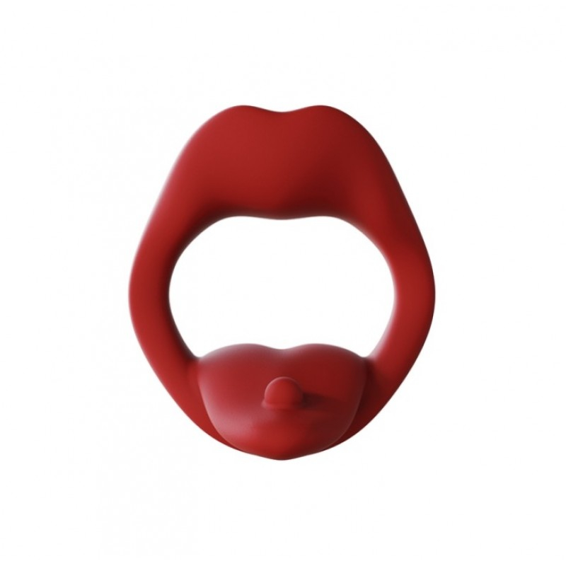 Ерекційне кільце у вигляді губ з язичком та вібрацією Licking Tongue Power Ring червоний