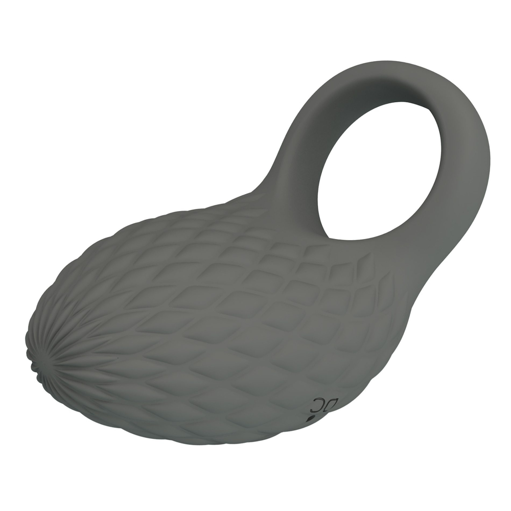 Эрекционное кольцо из упругого силикона с ребристой поверхностью и небольшим выступом, для дополнительной стимуляции клитора, с массажным вибростимулятором.
