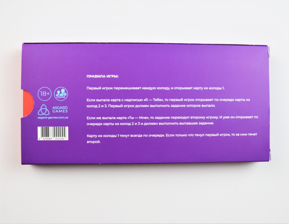 Якщо ж випала карта" Ти-Мені", то завдання переходить другому гравцеві. І вже він відкриває по черзі карти з колод 2 і 3 і повинен виконати випало завдання.