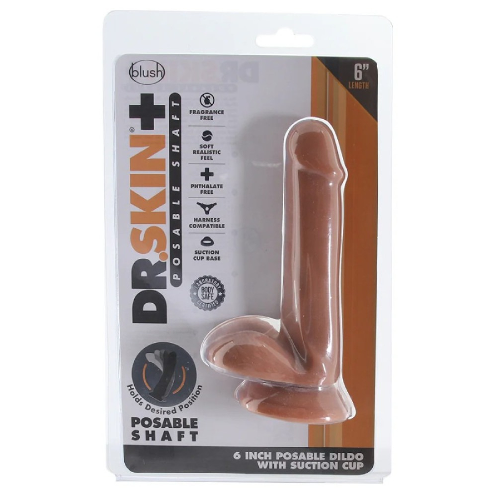 Фалоімітатор реалістичний на присосці коричневий Blush Dr. Skin Plus Posable Фалоімітатор реалістичний Blush Dr. Skin Plus Posable на присосці, коричневий