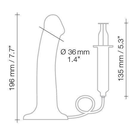 У потрібний момент натисніть на шприц (раніше наповнений рідиною на ваш вибір), щоб фалоімітатор еякулював, пропонуючи вам більш реальний досвід!