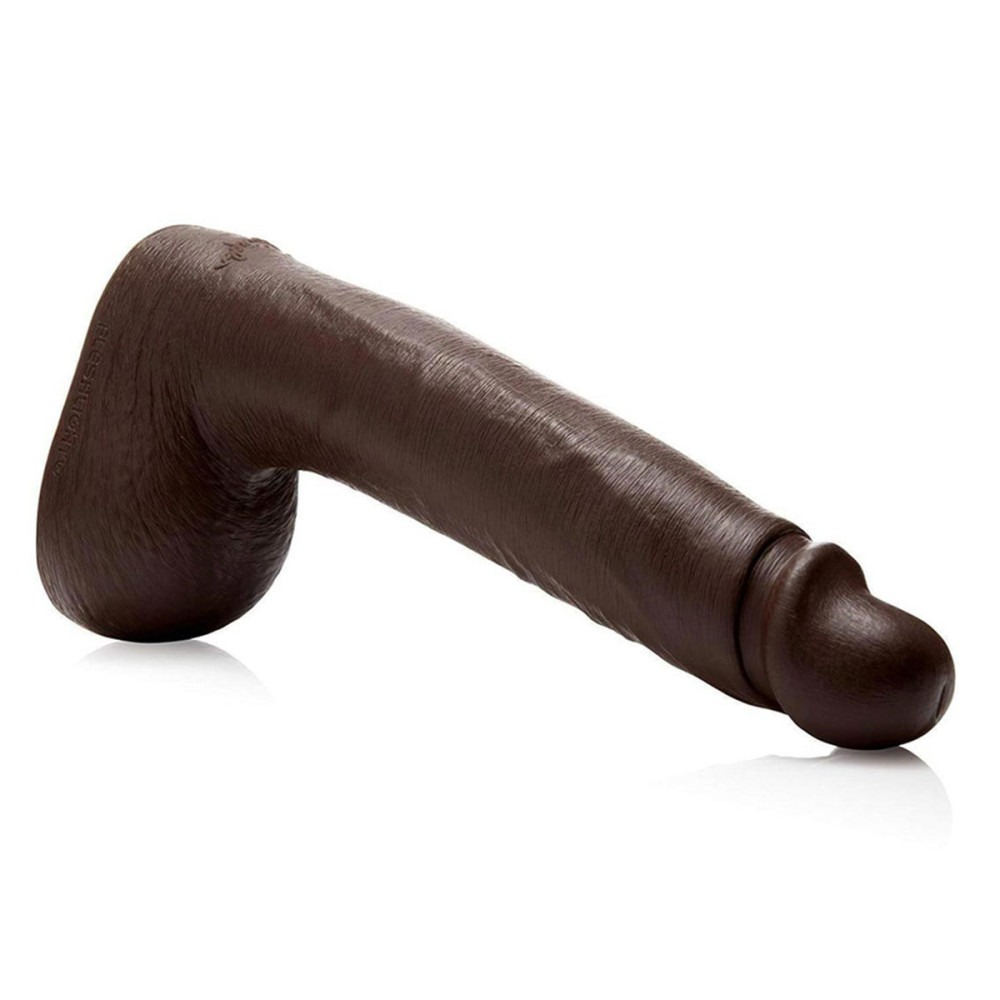 Фалоімітатор має мошонку, круглу голівку та вени на стовбурі.