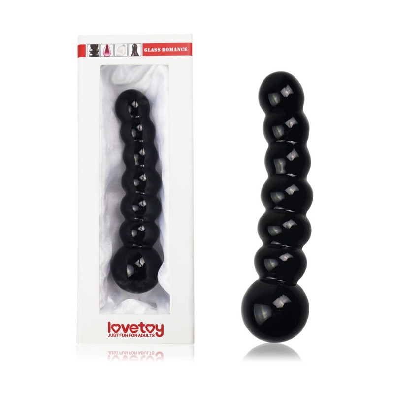 Фалоімітатор скляний у формі кульок чорного кольору Lovetoy Glass Romance