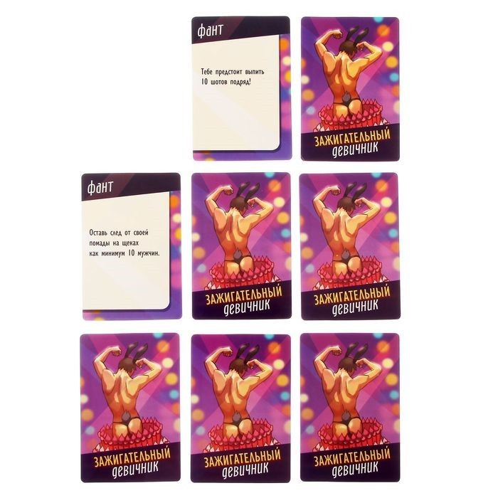 Ви готові познайомитися ближче і дізнатися таємні бажання друзів? Набір фантів "нижче пояса" відмінно підійде для ваших підступних планів! Варто взяти його на вечірку, як багато гостей відкриються перед вами з нового боку, давши волю своїм самим забороненим думкам. Вже в передчутті? Тоді швидше починайте гру.
