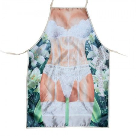Здивуйте свого партнера на кухні за допомогою цього класичного кухонного фартуха з оригінальним, забавним зображенням.