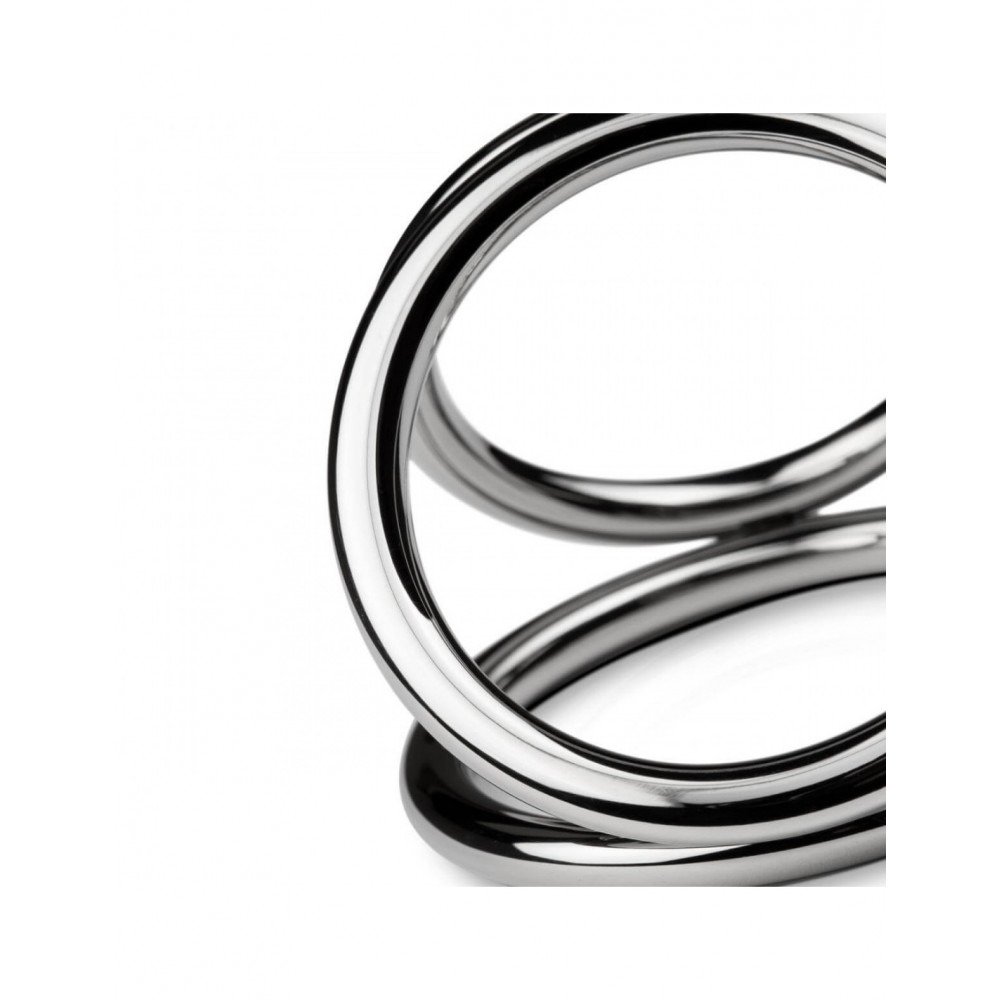Трикамерний півник і кулькове кільце Triad - це розкішне півняче кільце із серії Easytoys Sinner Gear Unbendable. Ця іграшка виготовлена з металу, що не містить нікелю, тому на дотик вона важча і гладша, ніж будь-яка інша секс-іграшка. Це кільце для члена складається з трьох кілець, в які ви вставите свої яйця та свій (напівжорсткий) пеніс. Це забезпечить вам тривалу ерекцію та ще більш інтенсивні відчуття. Запірне кільце можна використовувати з будь-яким мастилом, його можна швидко та ретельно очистити. Розміри внутрішнього діаметра: велике кільце має довжину п'ять сантиметрів та призначене для яєчок та пеніса. Середнє кільце має довжину чотири з половиною сантиметри і призначене для кульок. Найменше кільце має довжину чотири сантиметри та охоплює пеніс.