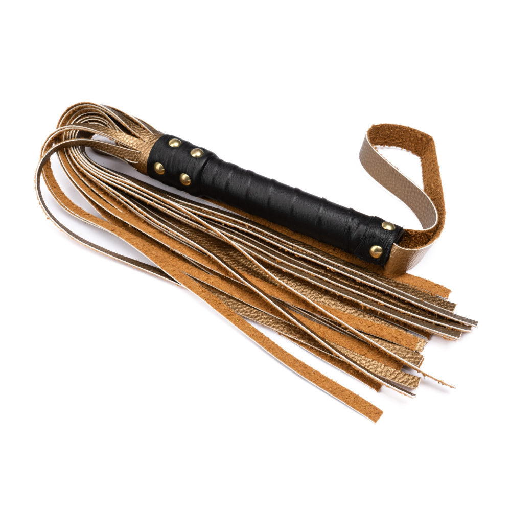 Флогер БДСМ із комбінованої шкіри чорно бронзового кольору Flirty COMBO Leather