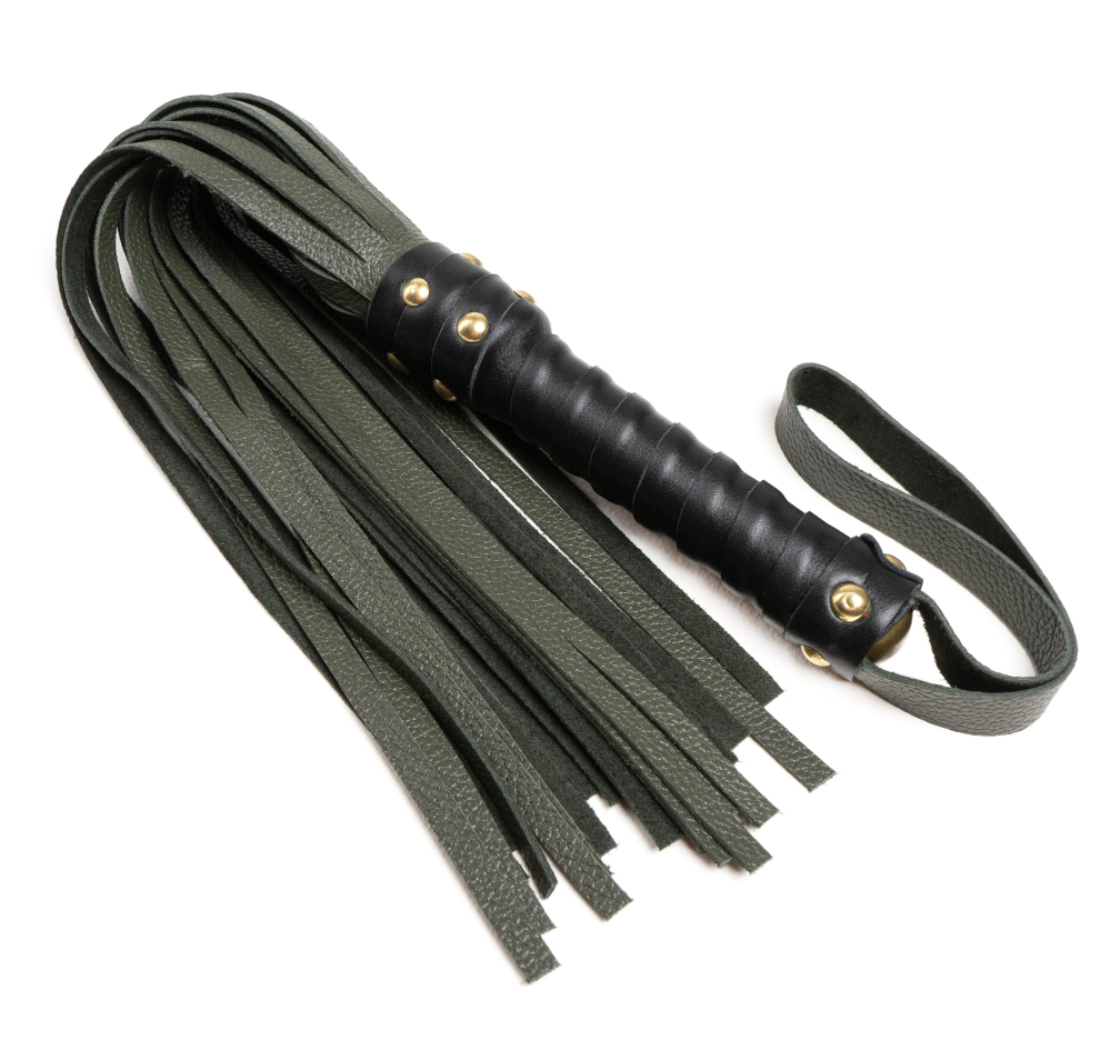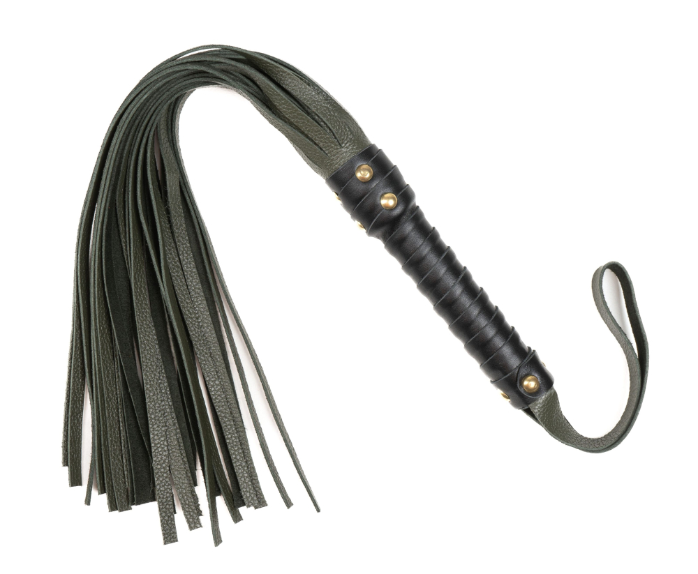 Флогер БДСМ з натуральної шкіри темно зеленого кольору Flirty Leather