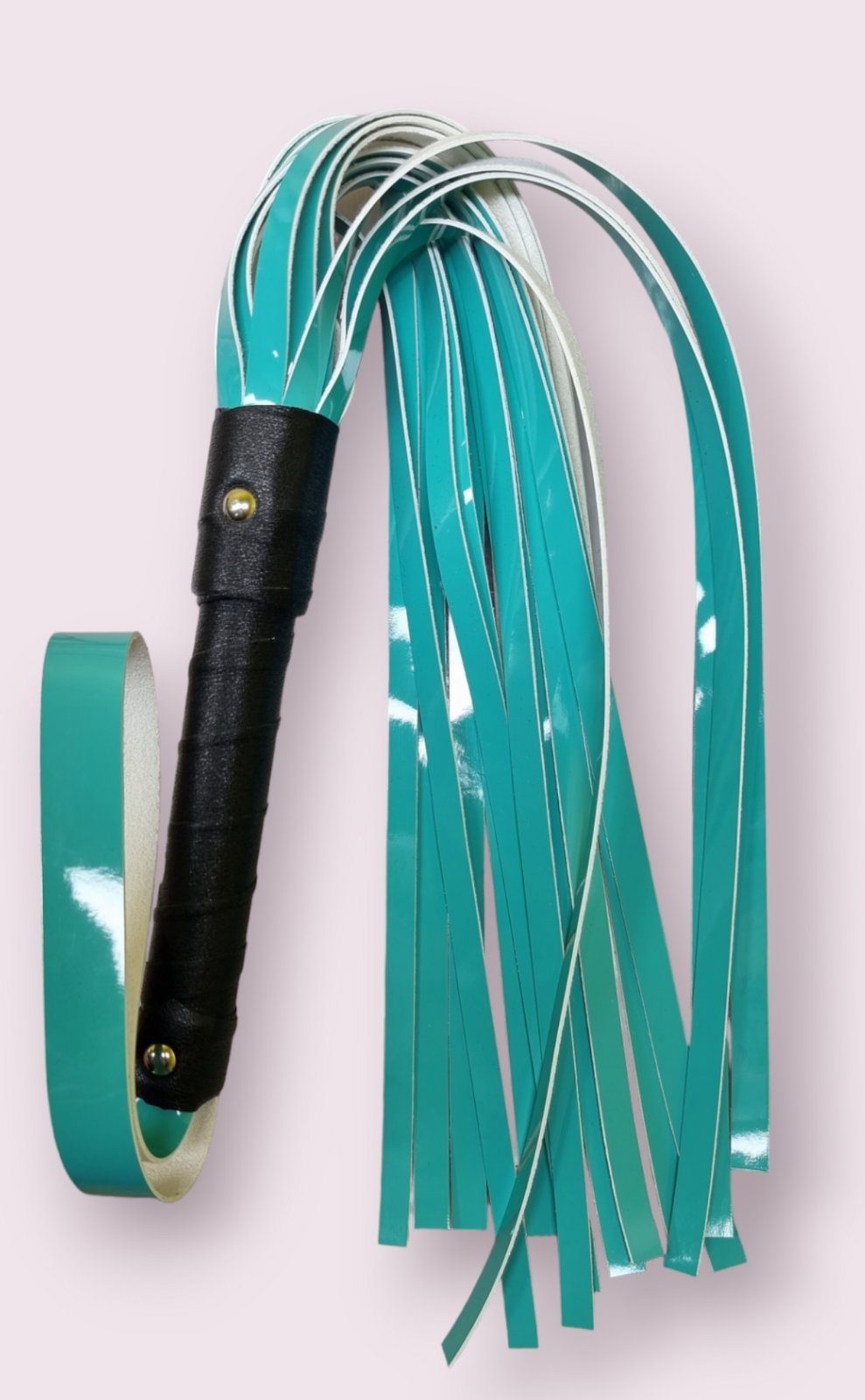 Флогер на 30 хвостів БДСМ із штучної лакованої шкіри бірюзового кольору Flirty