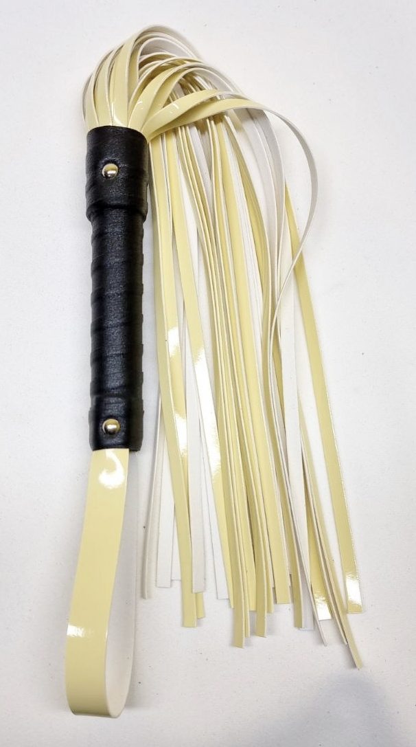 Характеристики Флогер на 30 хвостів БДСМ із штучної лакованої шкіри жовтого кольору Flirty