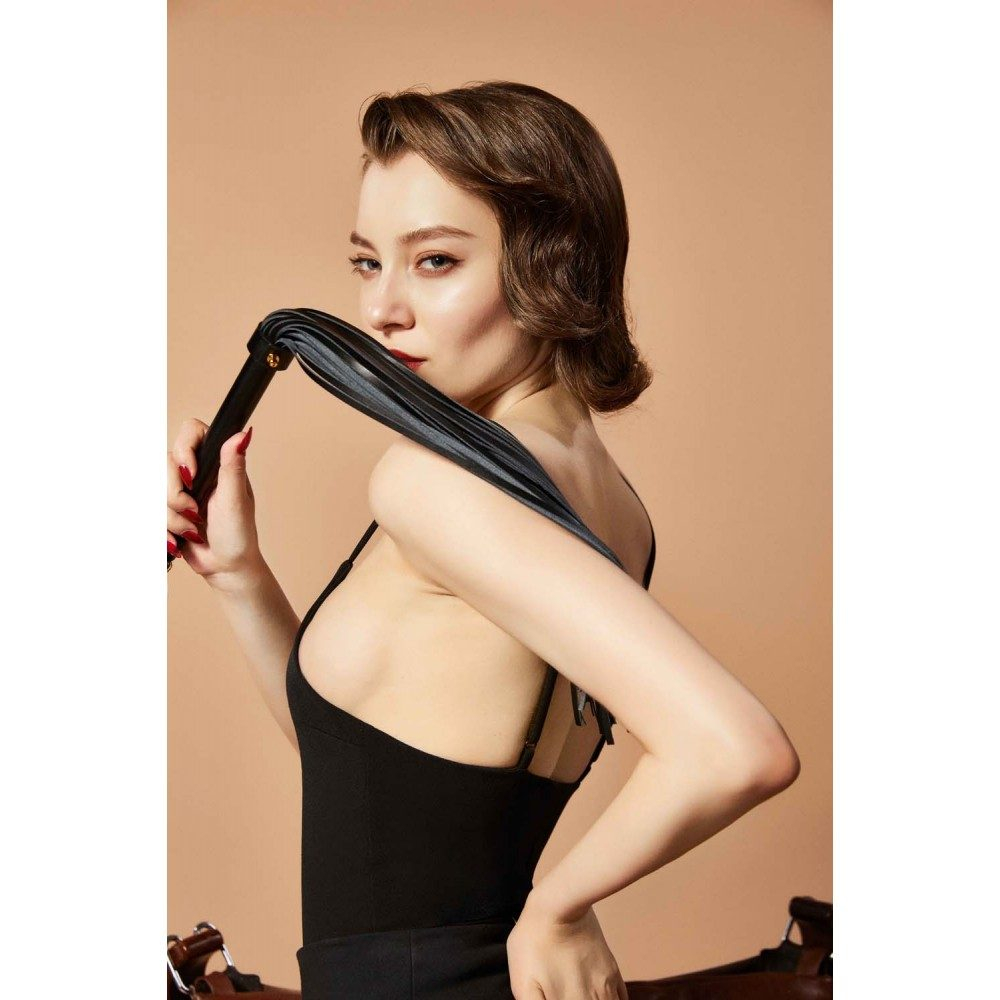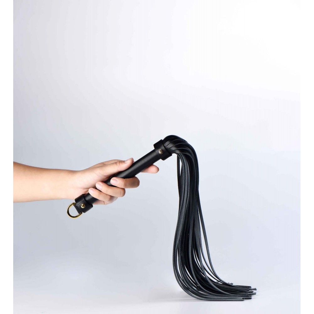 Характеристики Флогер БДСМ з італійської шкіри чорного кольору з металевою фурнітурою з позолотою Upko