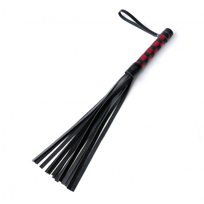 Флогер з 14 хвостами БДСМ з натуральної шкіри з забарвленням у шаховому порядку чорно червоного кольору Scappa