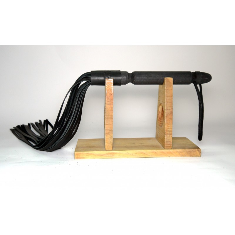 Шкіряний батіг 24 хвостиКолір: чорнийРозмір: довжина виробу -70см,ручка-24см, хвости-46смМатеріал: натуральна шкіра,ручка – натуральне дерево “бук”