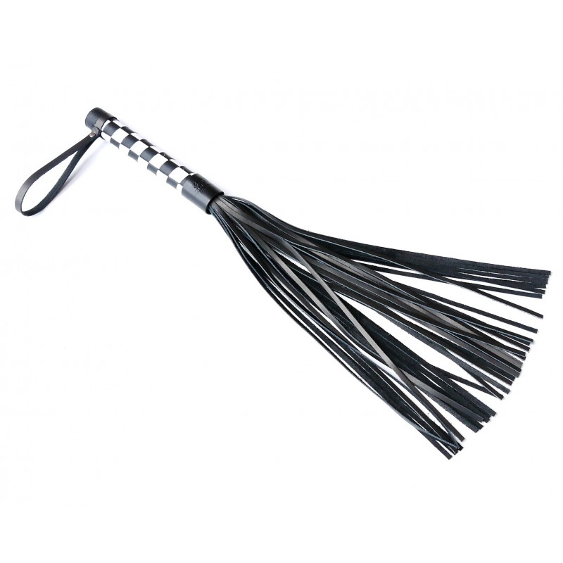 Характеристики Флогер з 40 хвостами БДСМ з натуральної шкіри з забарвленням у шаховому порядку чорно білого кольору Scappa