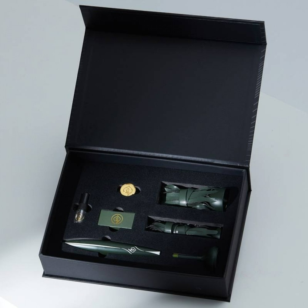 Характеристики Флогер зі змінними насадками БДСМ натуральна шкіра зелений Lockink 580 мм