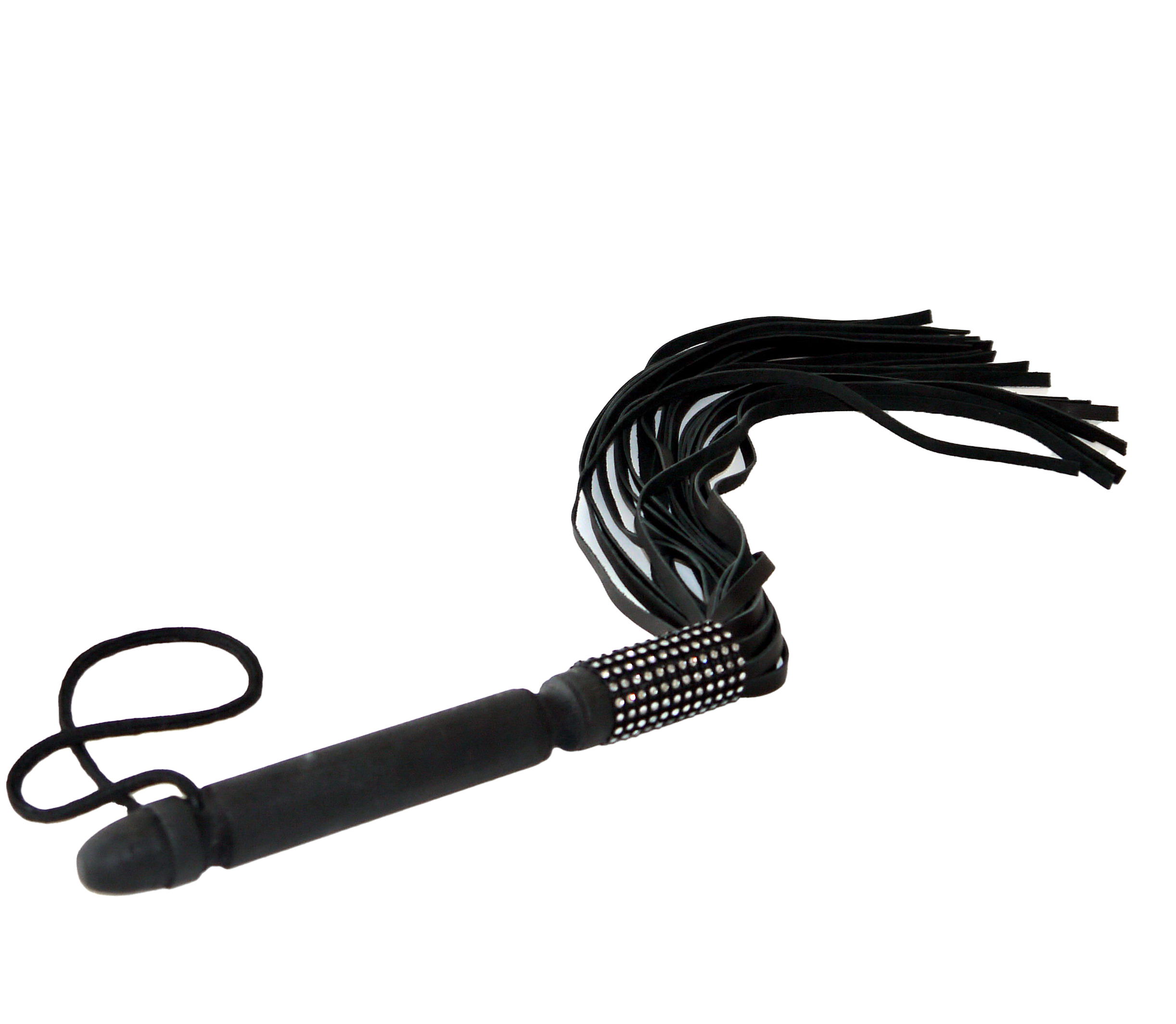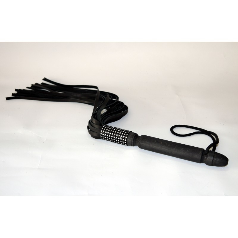 Флогер зі стразами БДСМ з натуральної шкіри чорного кольору Scappa