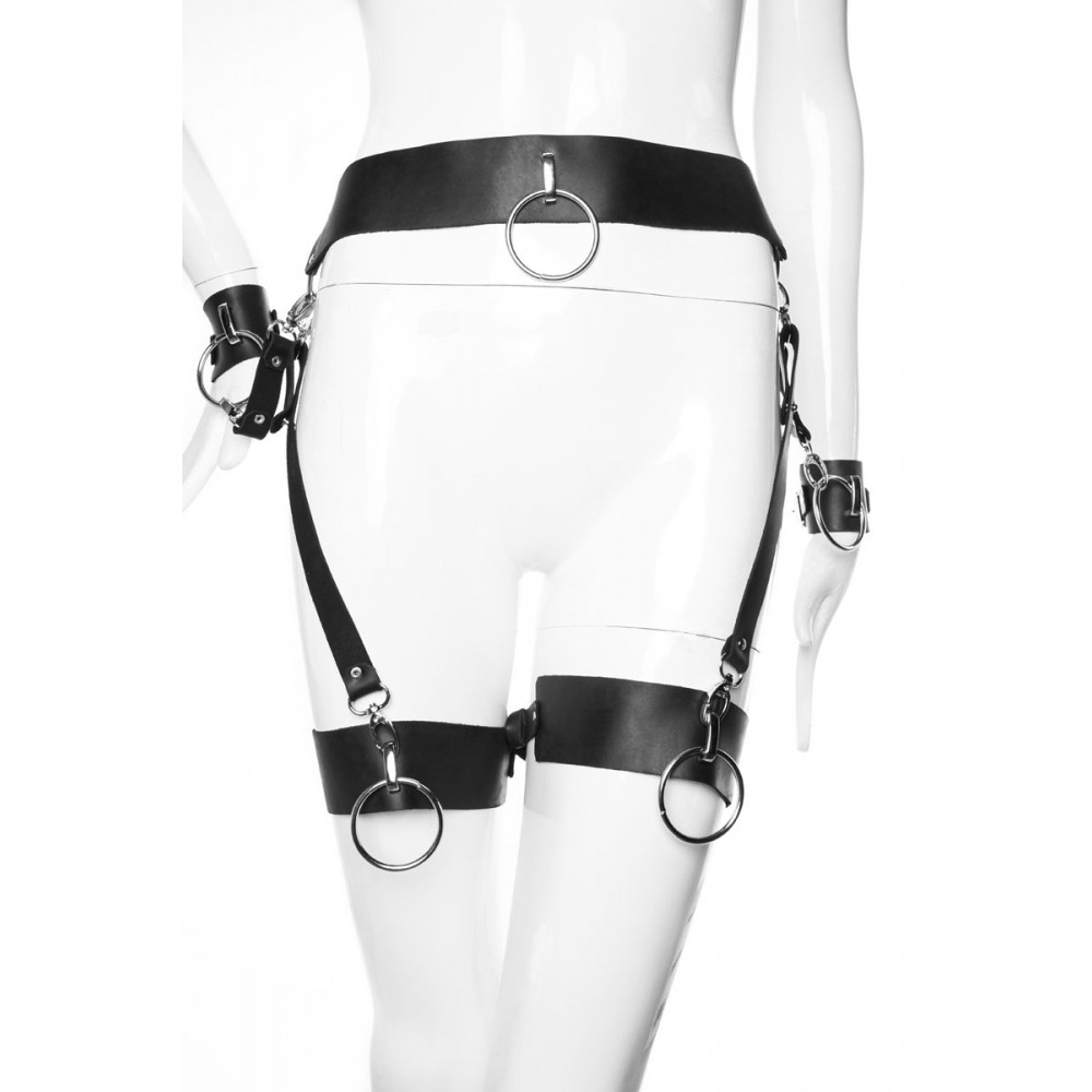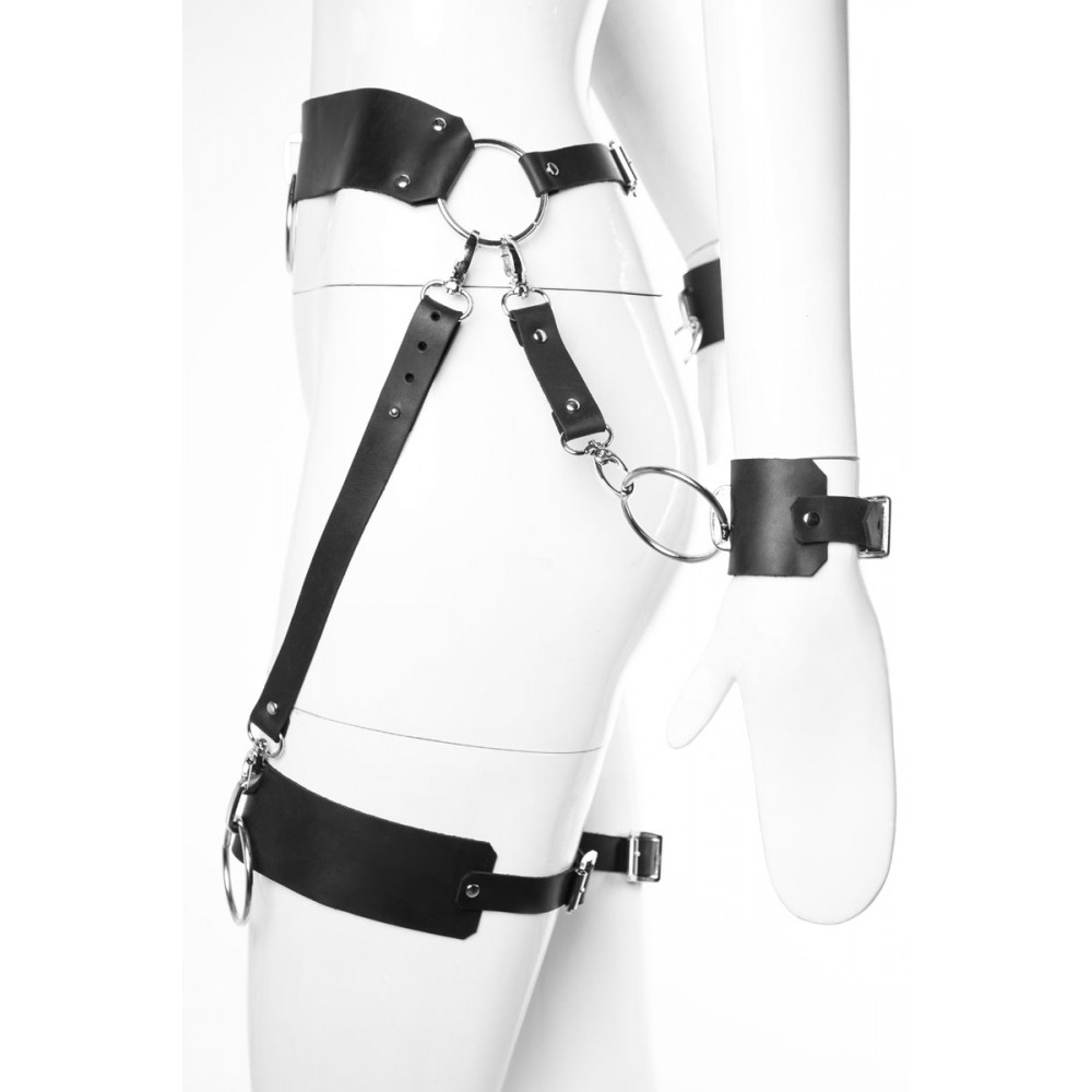 Гартери з кайданами з фіксацією рук до поясу шкіряні чорні Loveshop g 38.1 розмір 42-44