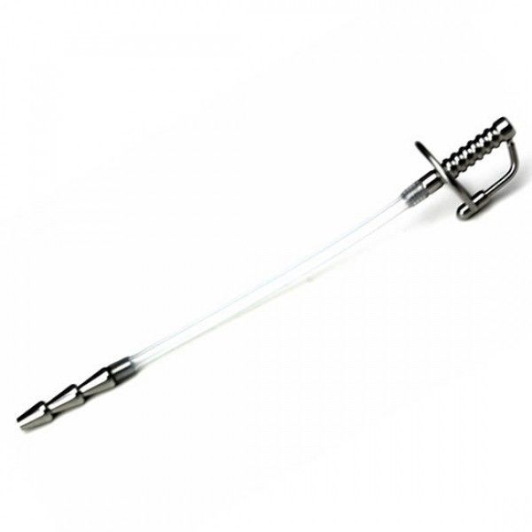 Виготовлений з медичного класу, безнікелева нержавіюча сталь. Ідеальне знаряддя для любителів себе помучити.Загальна довжина найбільший діаметр 230мм. труба нержавіючої сталі 9мм, діаметр наскрізного отвору 3мм. діаметр трубки 6 мм, Діаметр кола 25мм і 30мм.вага приблизно 50г.