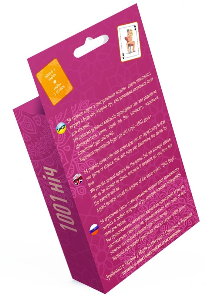 З даною грою спекотні вечори вам забезпечені! 54 гральних карти з позами допоможуть зануритися в світ пристрасті і азарту без обмежень.