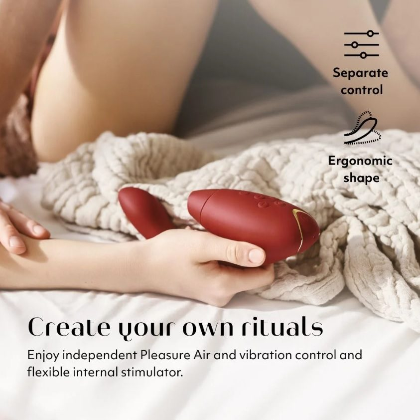 Двойной вибратор DUO 2 одновременно нацеливается на G-точку грохочущими вибрациями и на клитор Pleasure Air, создавая смешанные оргазмы глубокого удовольствия.