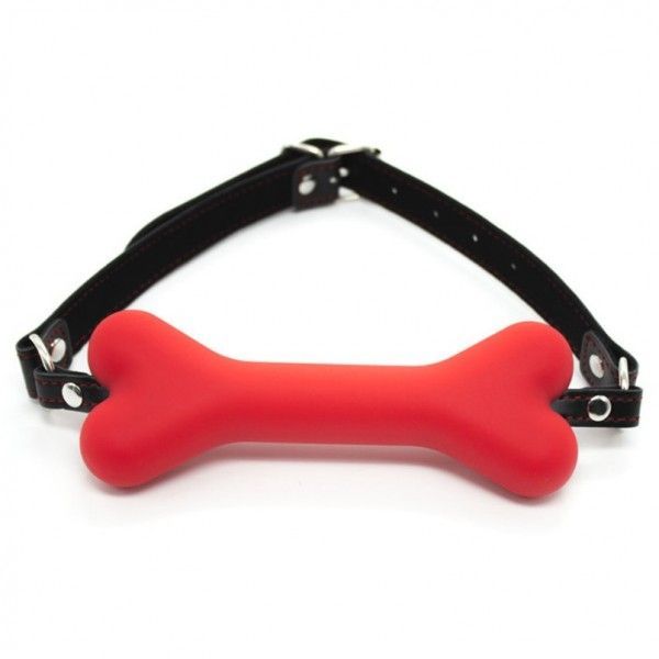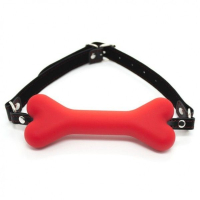 Чорний кжаний кляп для рота з м'якою силіконовою подушечкою-кісточкою. Міцний регульований ремінь і замочок для запобігання.