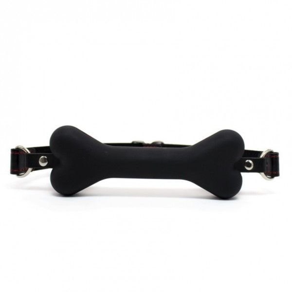 Чорний кжаний кляп для рота з м'якою силіконовою подушечкою-кісточкою. Міцний регульований ремінь і замочок для запобігання.
