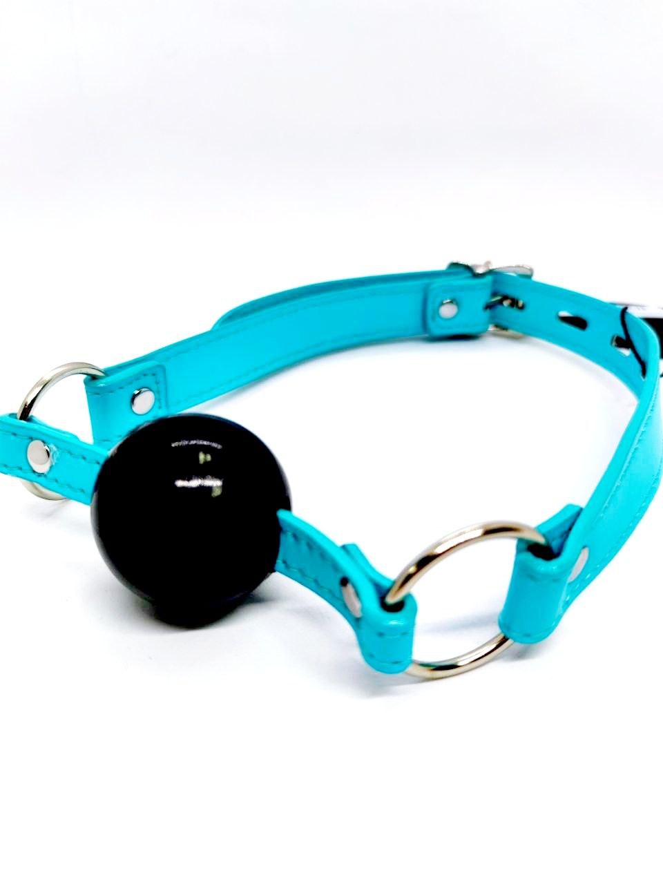 Кляп у рот БДСМ чорно блакитного кольору DS Fetish Ball gag blue