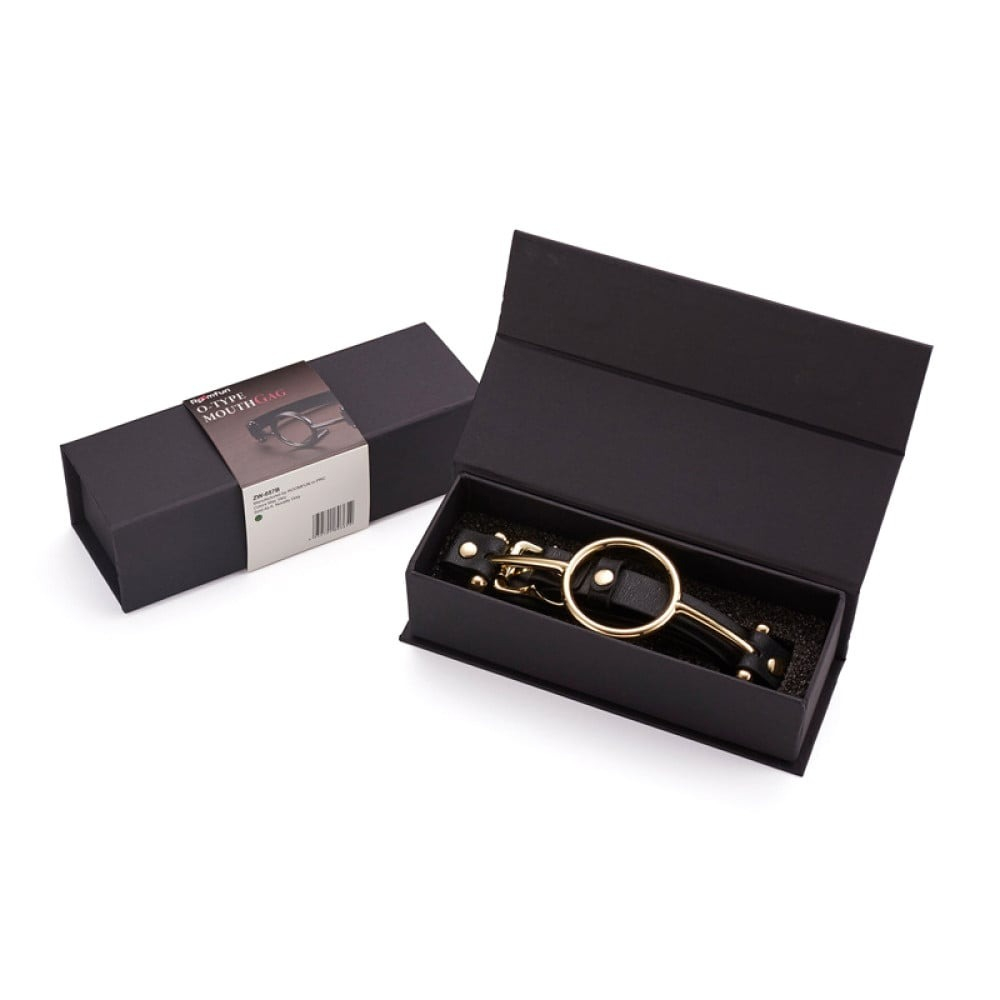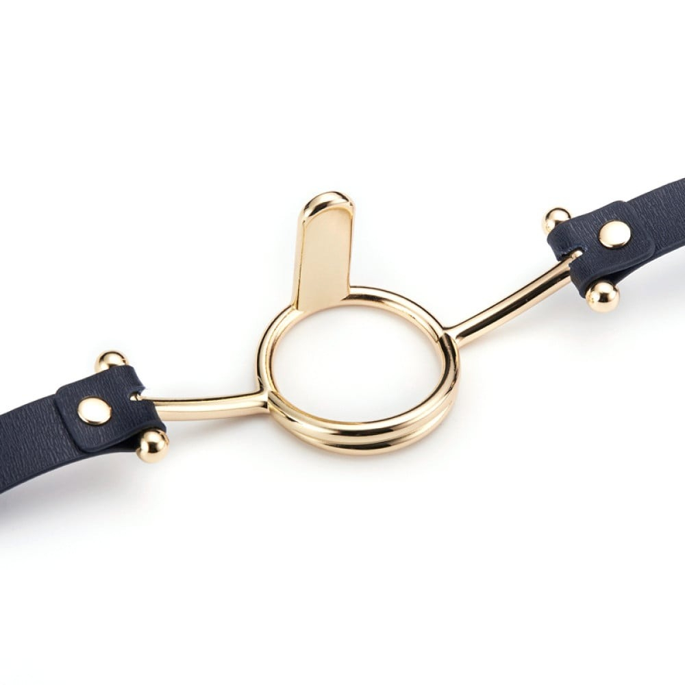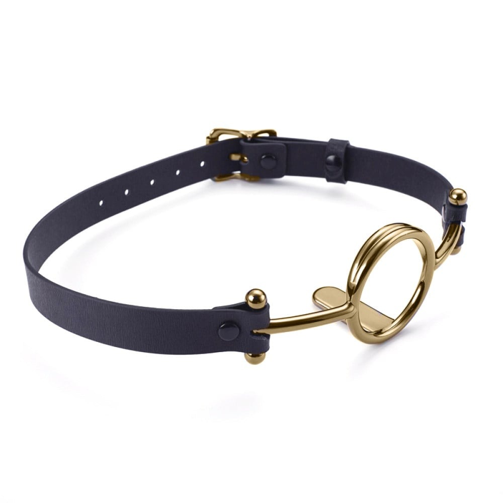 Кляп чорний Roomfun Romfun Mouth Gag M із золотим кільцем для притискання мови
