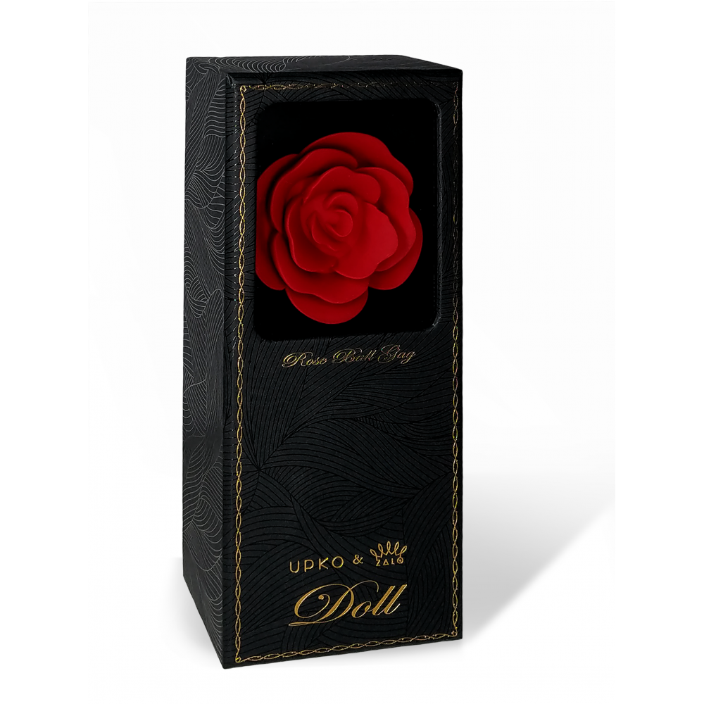 Кляп у вигляді троянди з силікону та італійської шкіри, червоно-чорного кольору, Rose Ball Gag UPKO